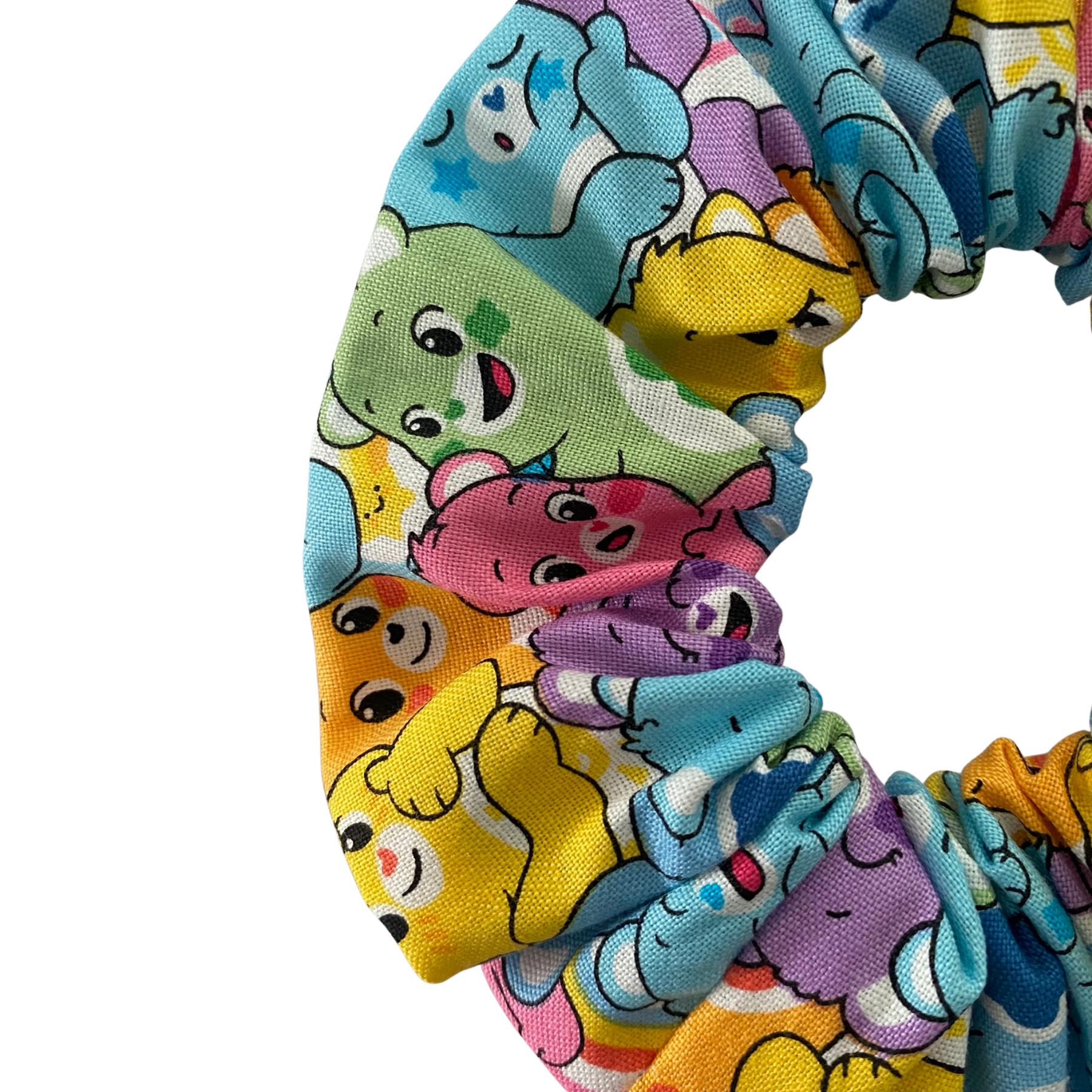 Our Care Bears Believe Scrunchie is handmade from soft cotton woven fabric and features colourful playful images of Care Bears. Finished with durable braided elastic, it provides a secure yet gentle hold, perfect for everyday wear. Available in three sizes to suit every hair type, this scrunchie is a fun and colourful accessory for Care Bears fans of all ages.