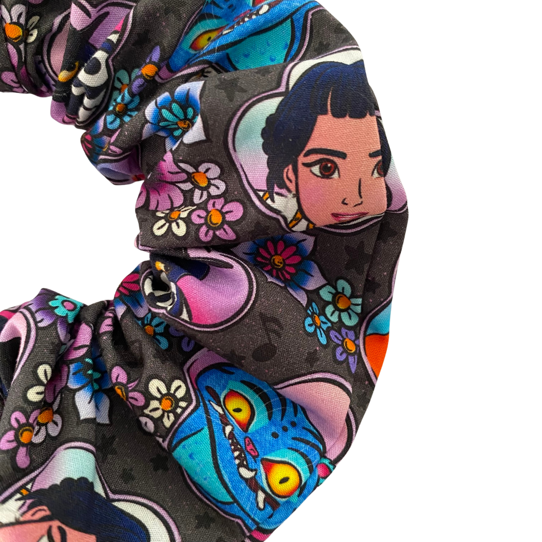 Our K-Pop Demon Hunters Scrunchie is handmade from cotton poplin fabric featuring characters from K-Pop Demon Hunters. Available in our most popular medium size, it’s finished with strong braided elastic for a secure hold—making it the perfect hair accessory for any fan.